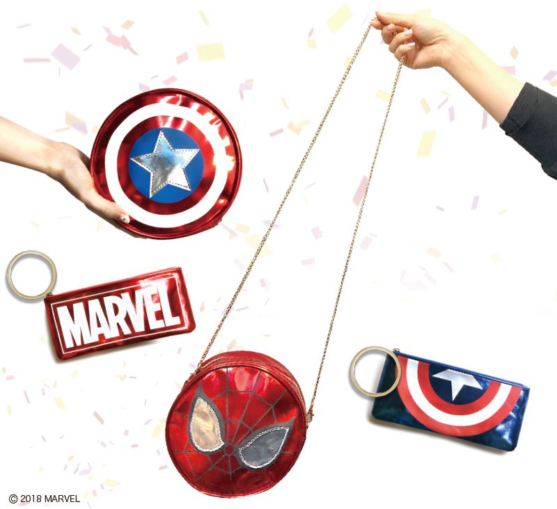 ヴィヴラニウム製の盾や「スパイダーマン」のお顔はコーディネートのアクセントにぴったり!