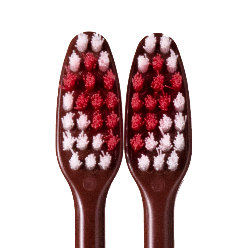 シックなブラウンのハンドルの歯ブラシはなんと2本を合わせるとブラシ部分がハート形に。