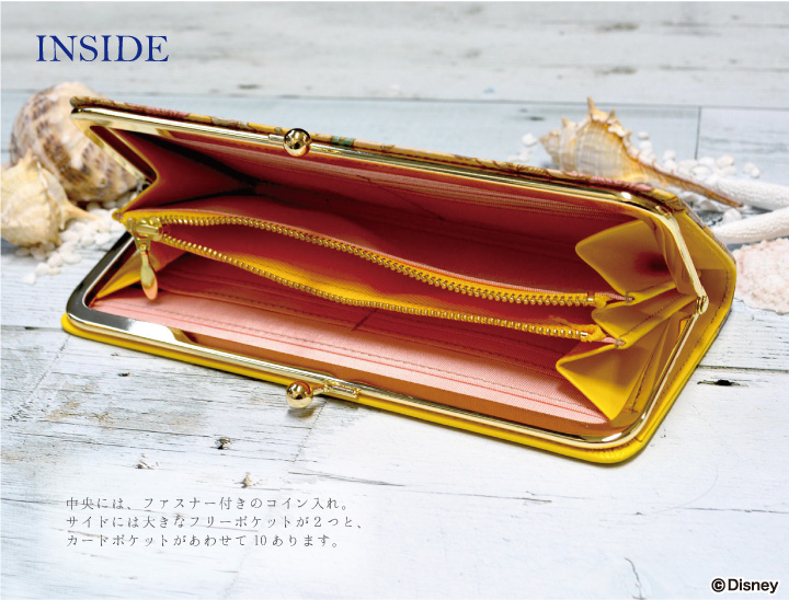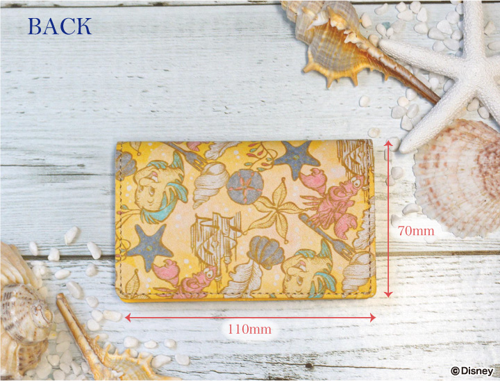 「アリエル」のお友達の「フランダー」と、お目付役の「セバスチャン」をはじめ、海のモチーフをちりばめたクラシックなデザインで、イエローを基調とした鮮やかな仕上がりになっています。