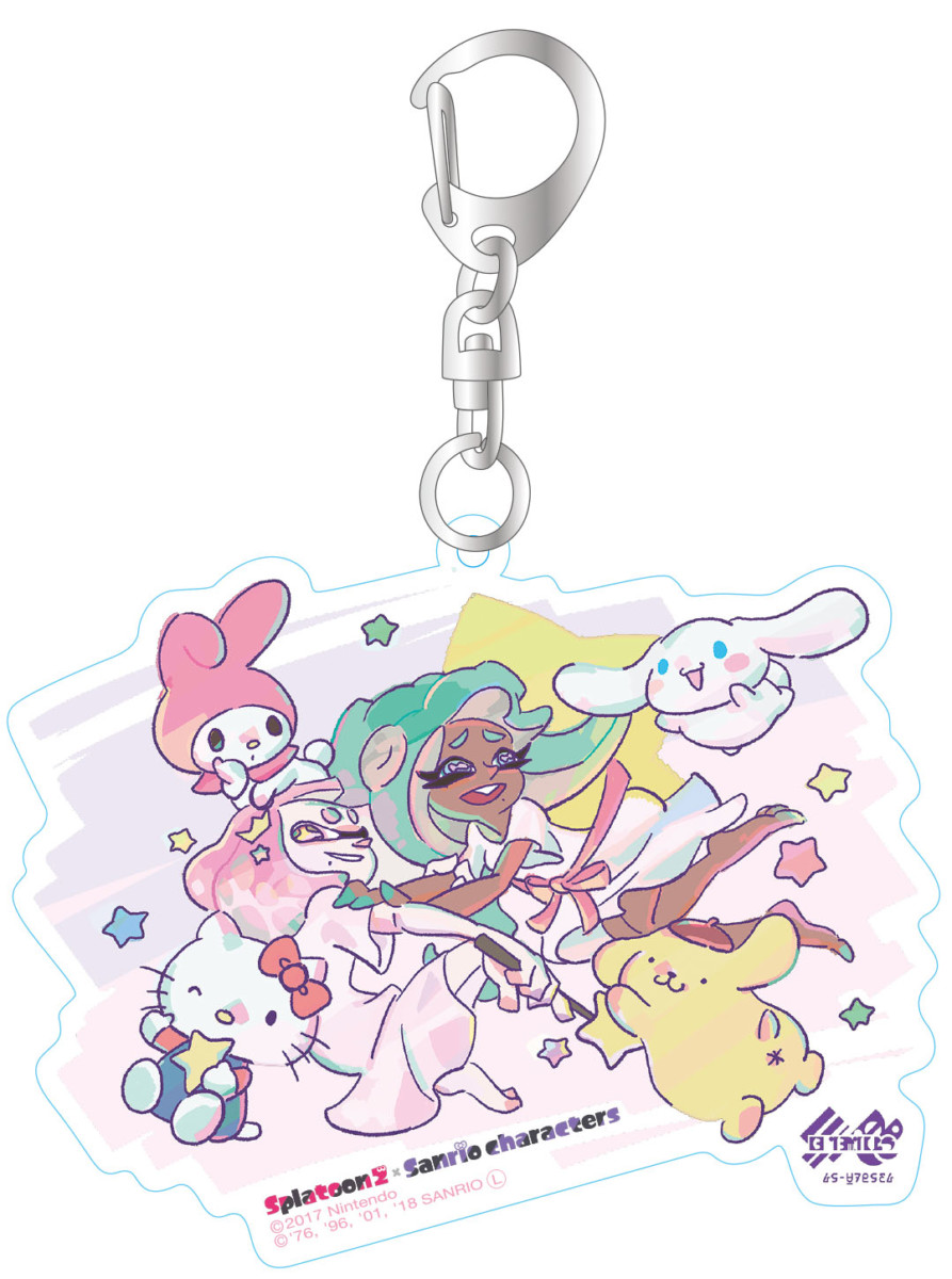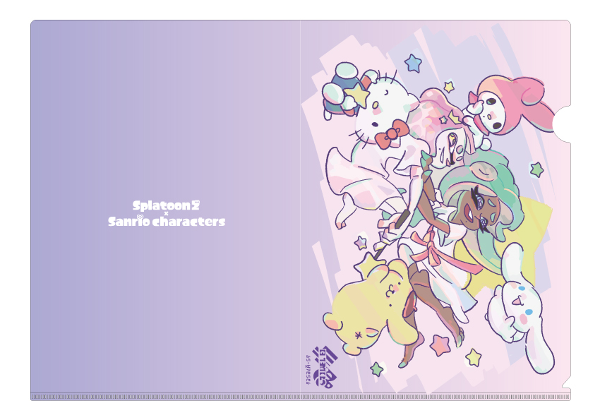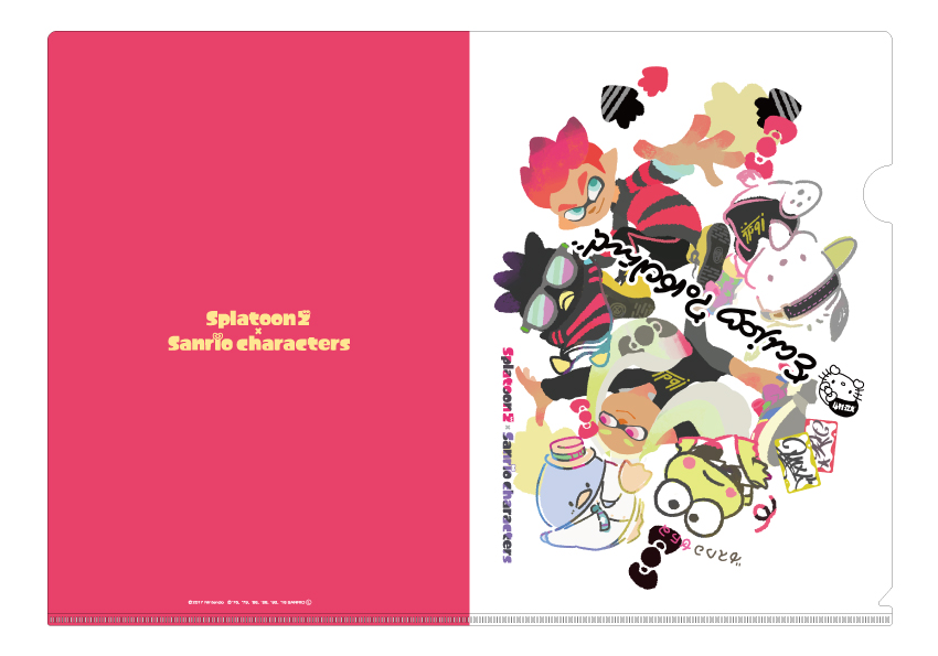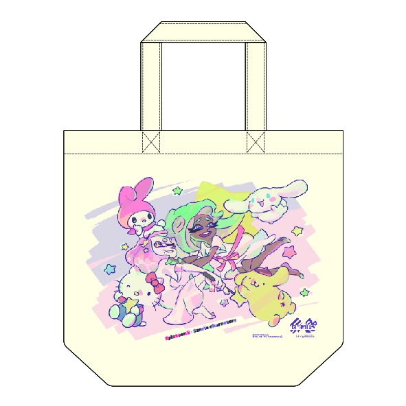 『スプラトゥーン2』内の人気アイドルユニット「テンタクルズ」とサンリオキャラクターたちがデザインされたものと