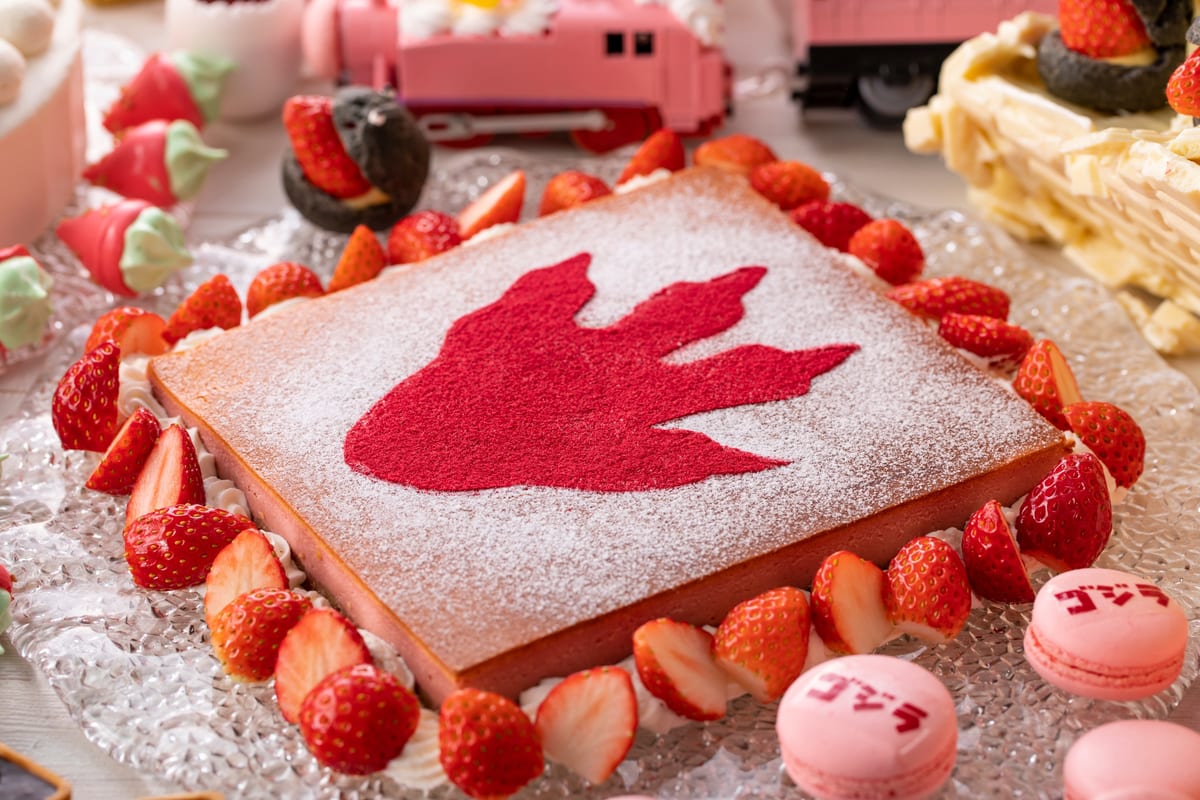 王道ながらも存在感バツグンのショートケーキをはじめ、ユニークな「イチ・ゴジラ」シュークリーム、「モスラ」をイメージしたイチゴロールケーキなどが登場。