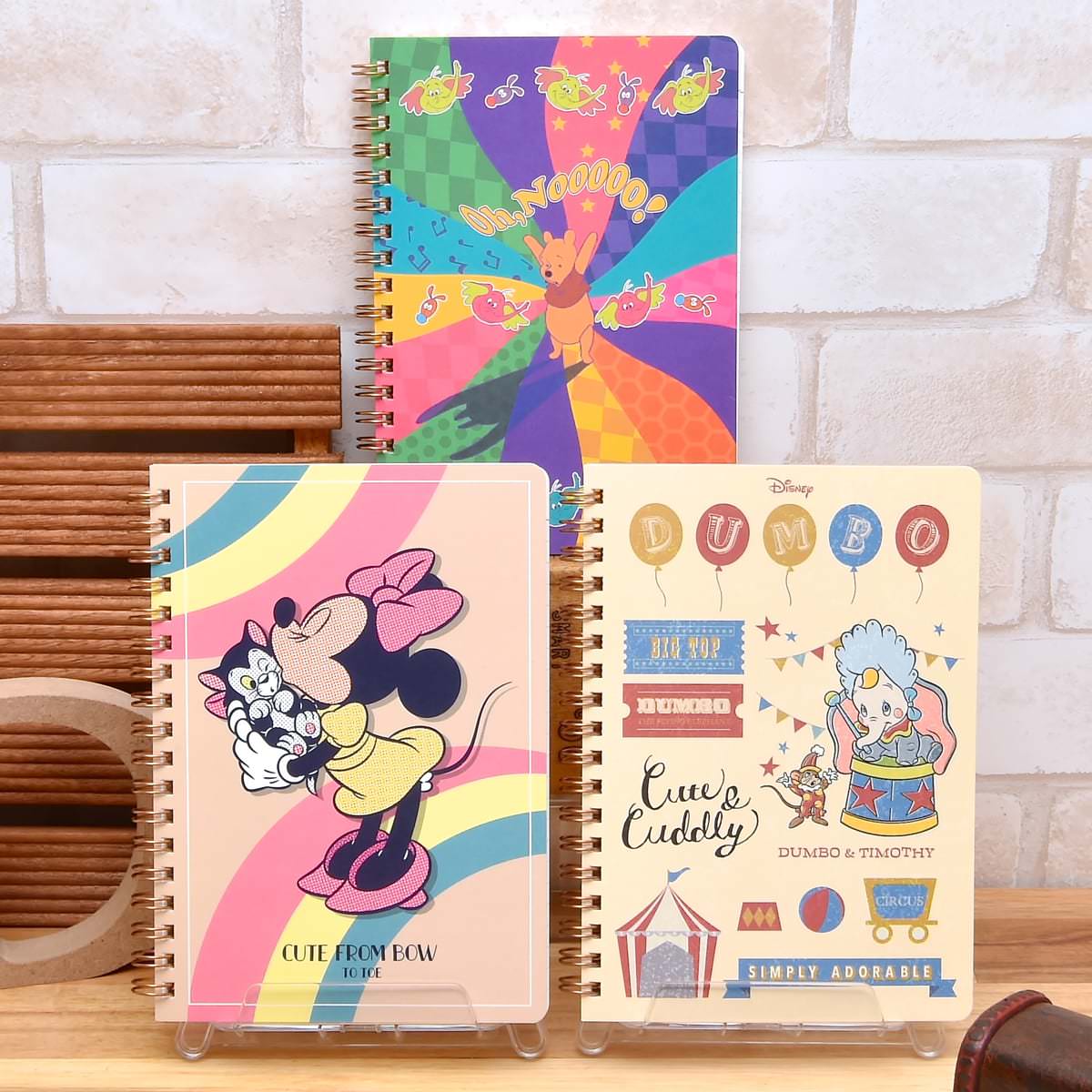「ミニーマウス」、「ダンボ」、「くまのプーさん」の各キャラクターが持つ個性に合わせた、流行のレトロテイストを取り入れたステーショナリーシリーズ「Retro World」