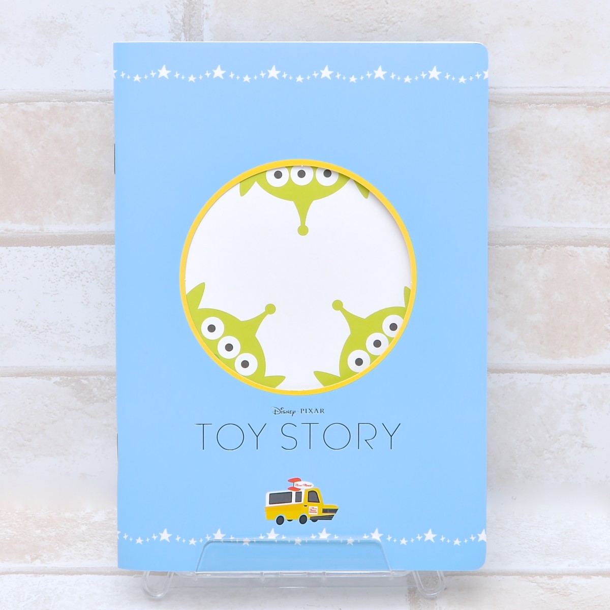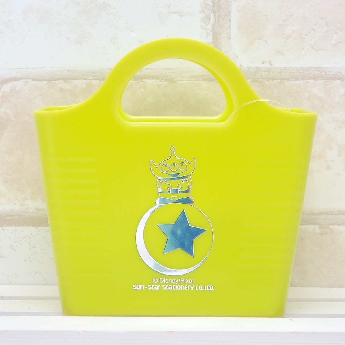イエローグリーンに、銀の箔押しで「ピクサーボール」にのった「エイリアン」がデザインされています。