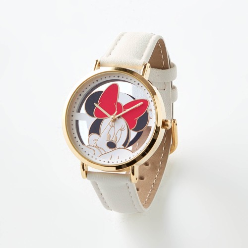 真っ赤なリボンがアクセントになっている「ミニーマウス」デザインの腕時計。