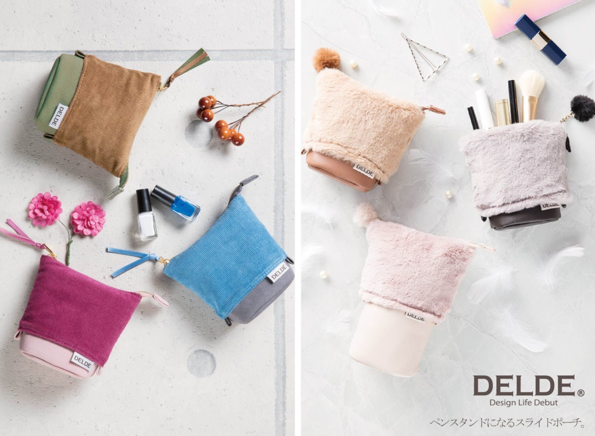 サンスター文具の雑貨ブランド「DELDE」から、発売から現在まで100万個を売り上げた大ヒット商品のスライドポーチと、ちょっとした小物たちをひとつにまとめて収納できるダングルポーチの秋冬デザインが登場☆