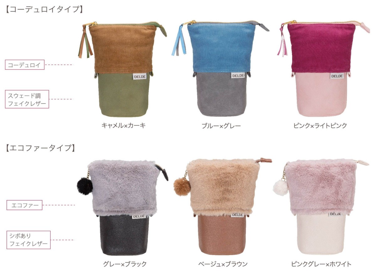 サンスター文具より、ペンスタンドに早変わりする「DELDE スライドポーチ」、バッグにぶらさげて使う「DELDE ダングルポーチ」秋冬デザインが登場!