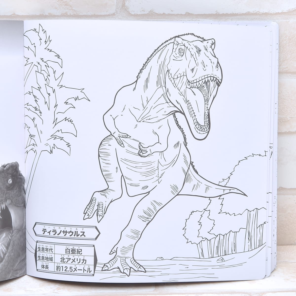 ぬりえ部分には迫力満点な恐竜のイラストがダイナミックに描かれています。
