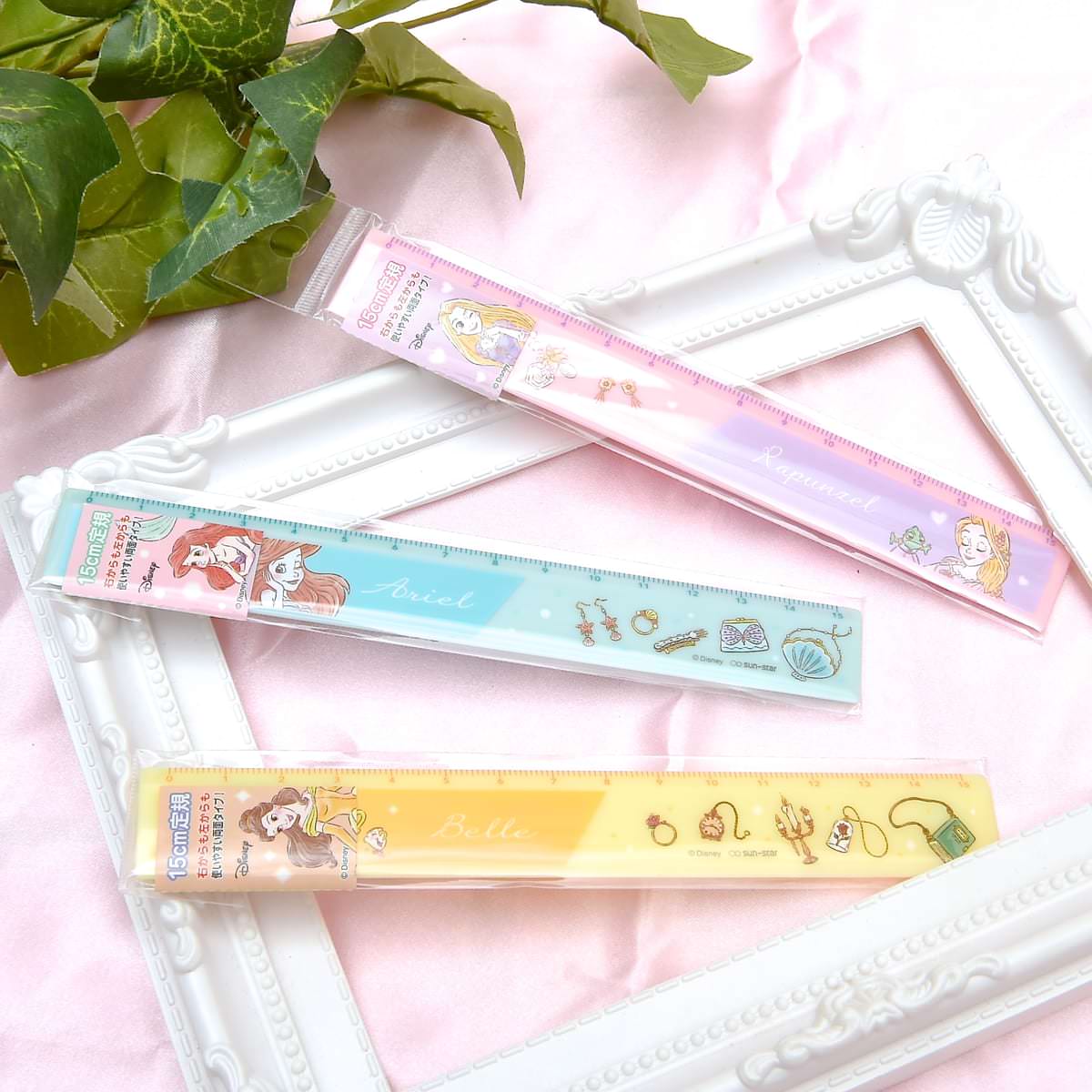 プリンセスたちがデザインされた、パステルカラーの愛らしい定規。