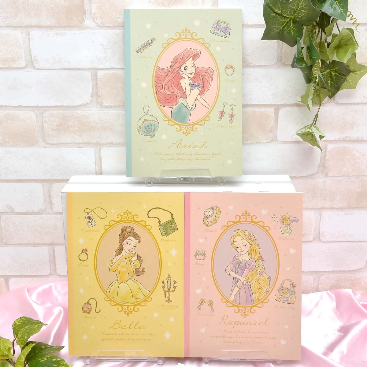 表紙は、人気のクラフト紙にパステルカラーでディズニープリンセスの「アリエル」、「ラプンツェル」、「ベル」が描かれています☆