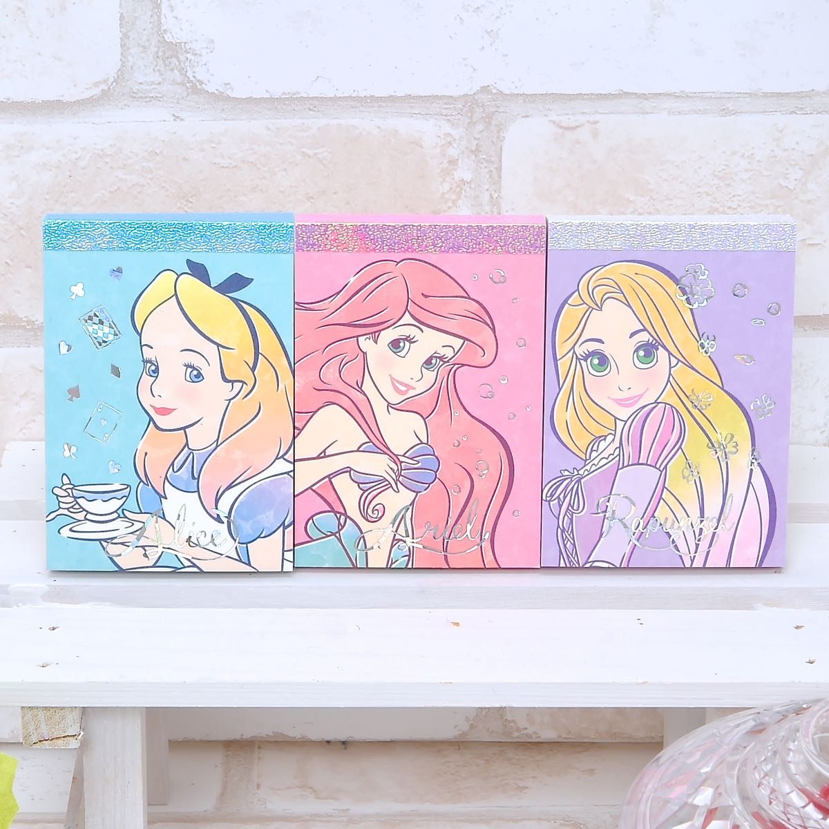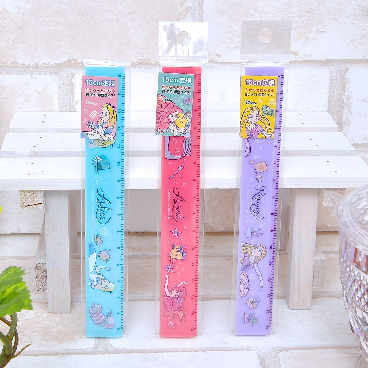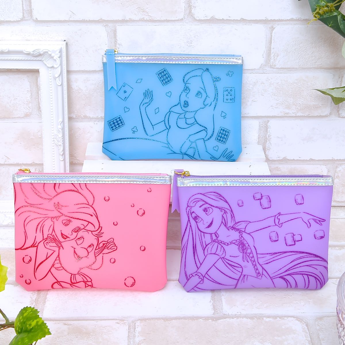 デザインに登場するのは、ディズニーアニメーション映画『リトル・マーメイド』のディズニープリンセス「アリエル」と、『塔の上のラプンツェル』のディズニープリンセス「ラプンツェル」、そして『ふしぎの国のアリス』の主人公「アリス」の3人。