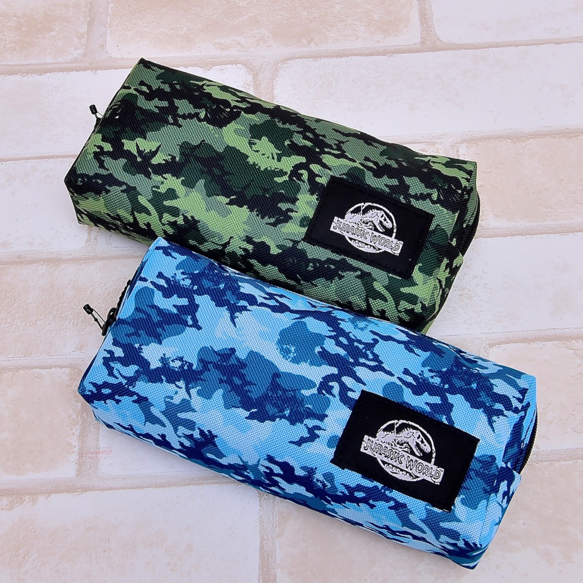 恐竜のシルエットがこっそり隠れている迷彩柄のペンケース。