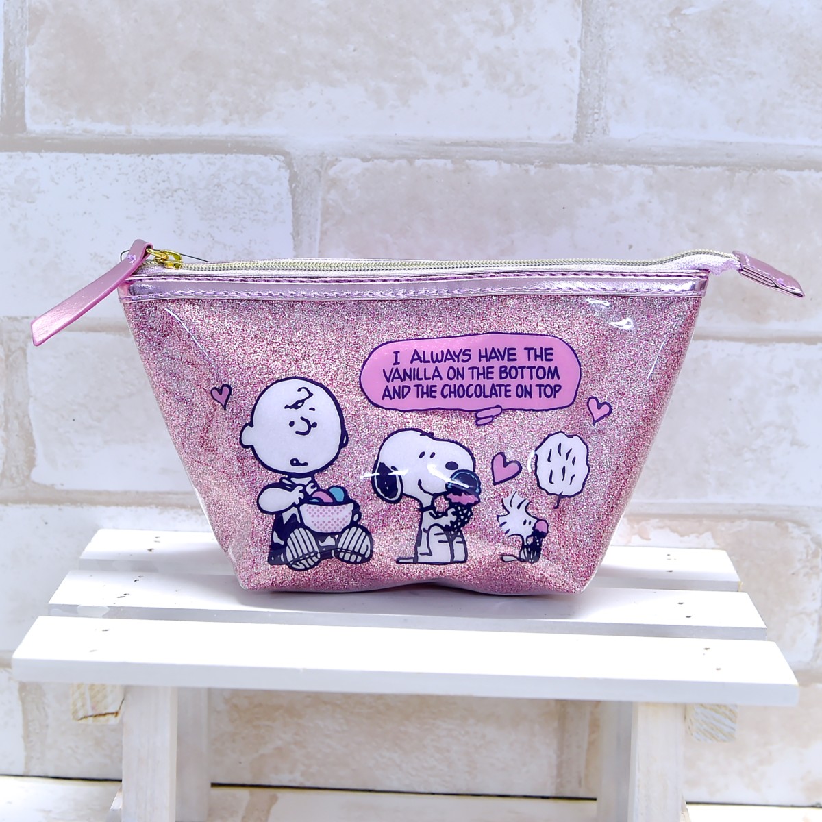 「スヌーピー P(ピンク)」デザインのペンポーチ。