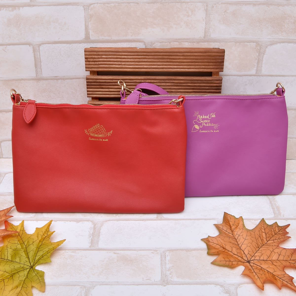 りんごや焼き芋を表現した丸いフォルムが可愛いポーチ。