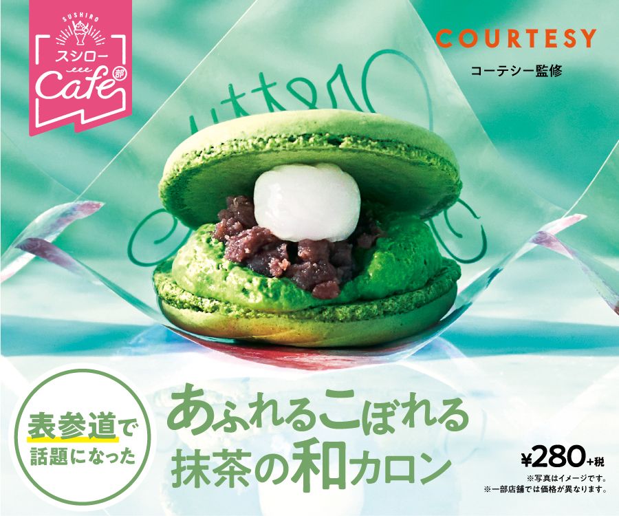 東京赤坂エリアの人気ベーカリー&フレンチレストラン「COURTESY」監修の「あふれるこぼれる抹茶の和カロン」が2018年8月1日(水)より全国のスシローにて期間限定販売!