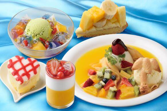人気急上昇中の青いお茶「バタフライピー」をジュレにして使用したオリジナルパフェや、ハワイのビーチを表現したクレープ・デセールを始め、マンゴー、パイナップルなどハワイを連想させる素材をふんだんに使用した、夏を満喫できるオリジナルスイーツが揃います。