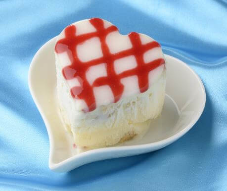 ホワイトチョコレートとココナッツソース、ベリーソースで仕上げます。