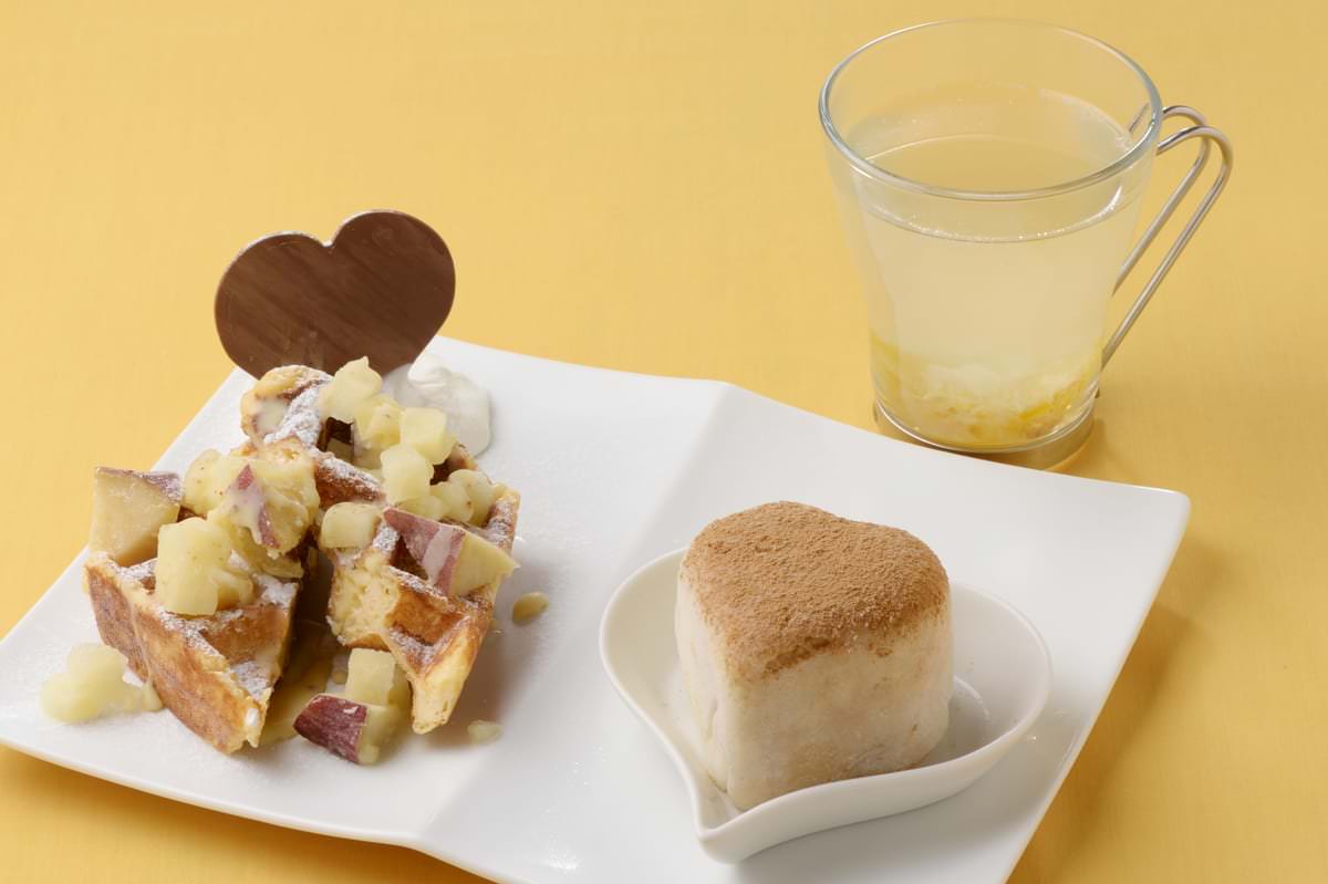 りんごとさつまいものワッフルとはーとのもちあいす HOTドリンクセット
