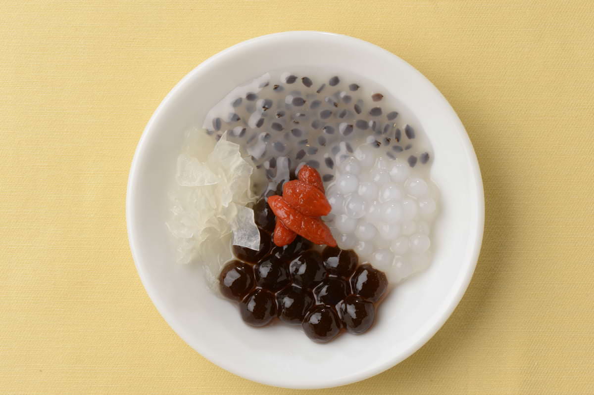 楊貴妃も愛した「白きくらげ」、デトックスな「サンフンウェン」、美肌や疲れ目にいいと言われる「紫いも」、美肌、アンチエイジングなど栄養たっぷりの「ゴマ」、スーパーフードとして人気急上昇の「クコの実」が使用されています。
