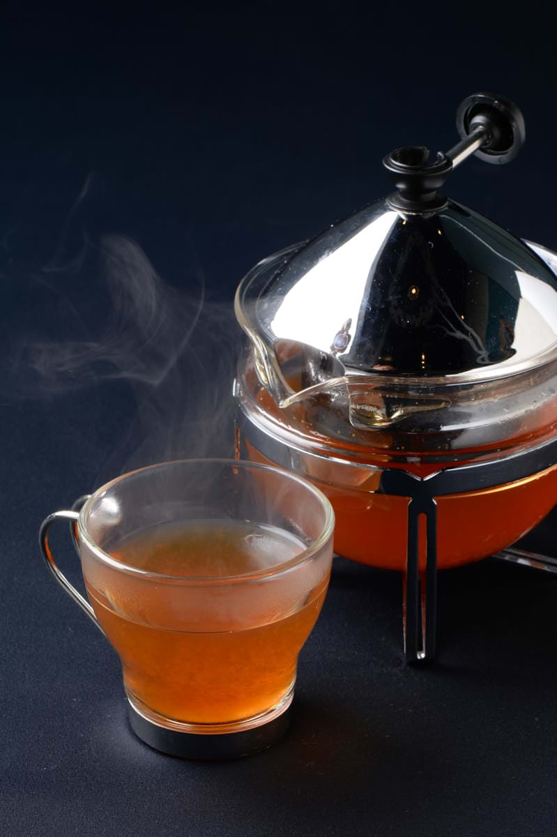 たっぷりのしょうがを丁寧に煮込んで作られた、自家製しょうがシロップとしょうがの砂糖漬けを入れたジンジャーティー。