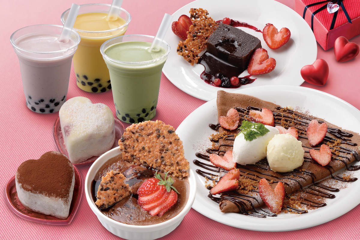 ハートの苺が散りばめられたショコラクレープや、 人気のタピオカがチョコ入りスペシャルバージョンになるなど、身体も心もほっと温まる、ハートウォーミングなスイーツが目白押し。