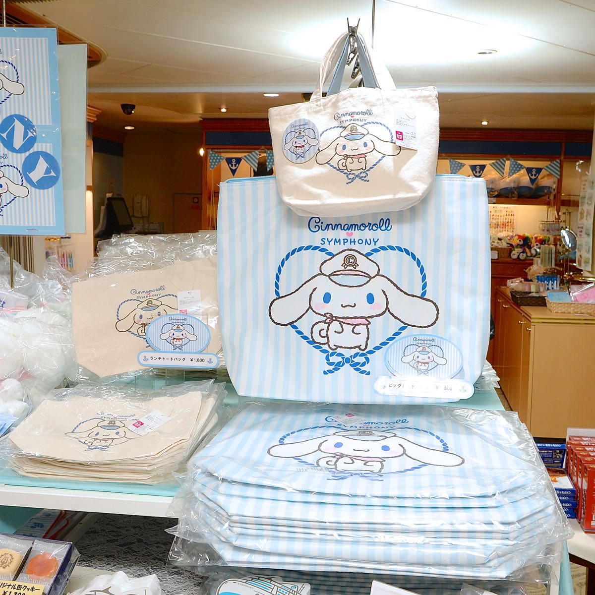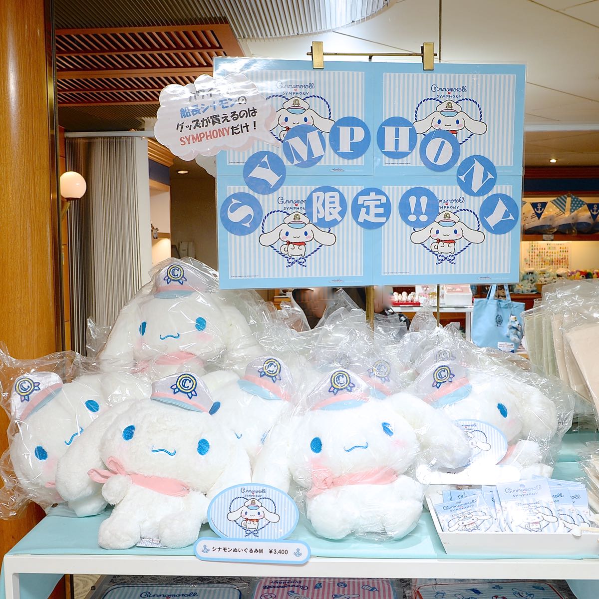 シンフォニーの船内では、船長帽を被ったシナモンのオリジナルグッズを販売中!