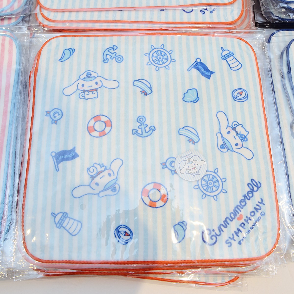 ブルーを基調に船長帽をかぶったシナモンが大きく描かれたデザインと、