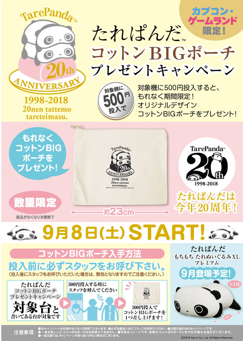 カプコン・ゲームランド限定「たれぱんだコットンBIGポーチプレゼントキャンペーン」