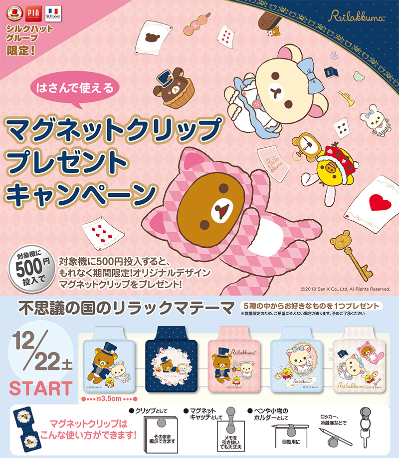 「不思議の国のリラックマ」のマグネットクリッププレゼントキャンペーンがシルクハットグループ限定で展開!