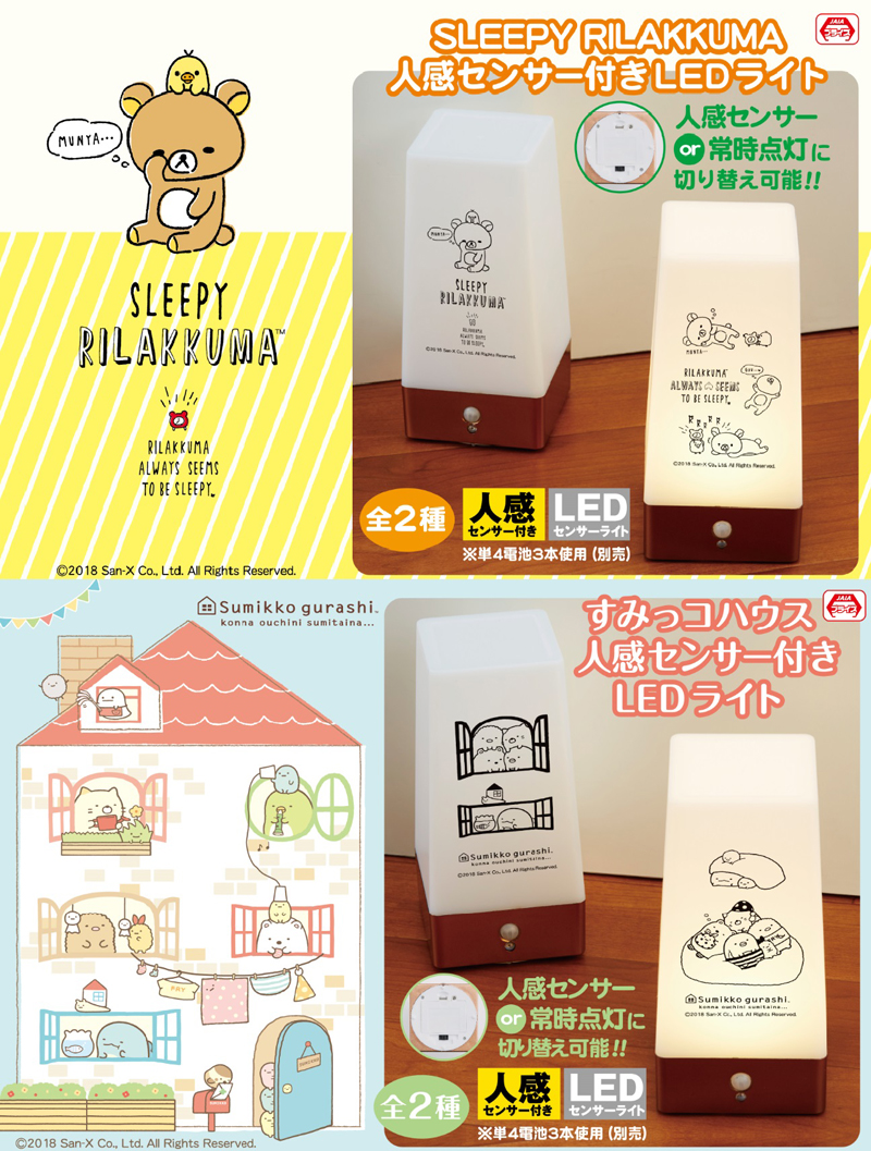 人感センサー付きLEDライトには人気のすみっコぐらしも登場です。