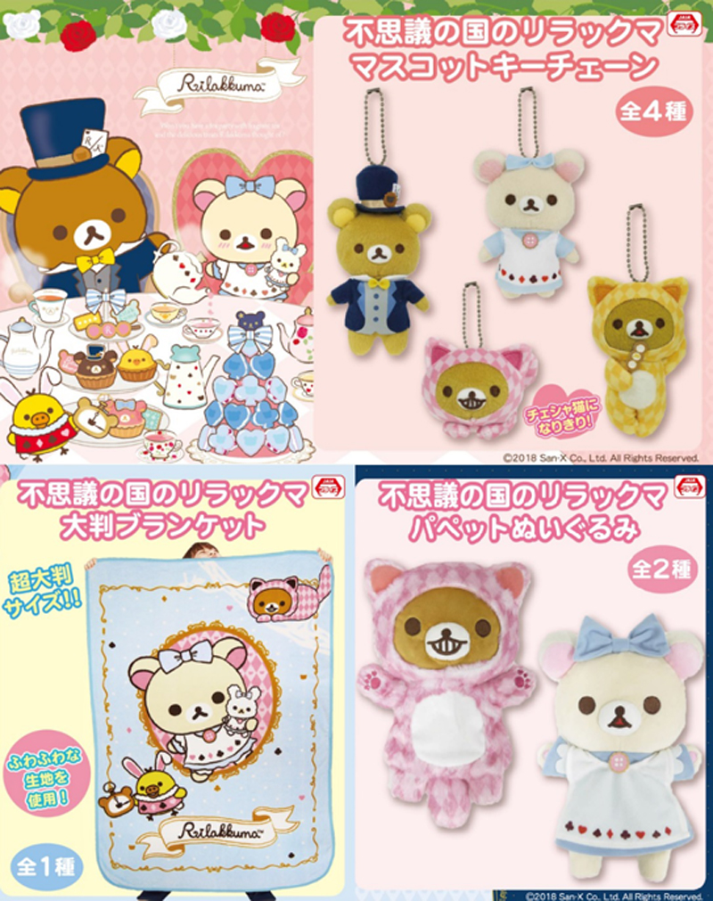 アリス、マッドハッター、チェシャ猫、合計4種類のキュートなリラックマキーチェーンをお見逃しなく☆