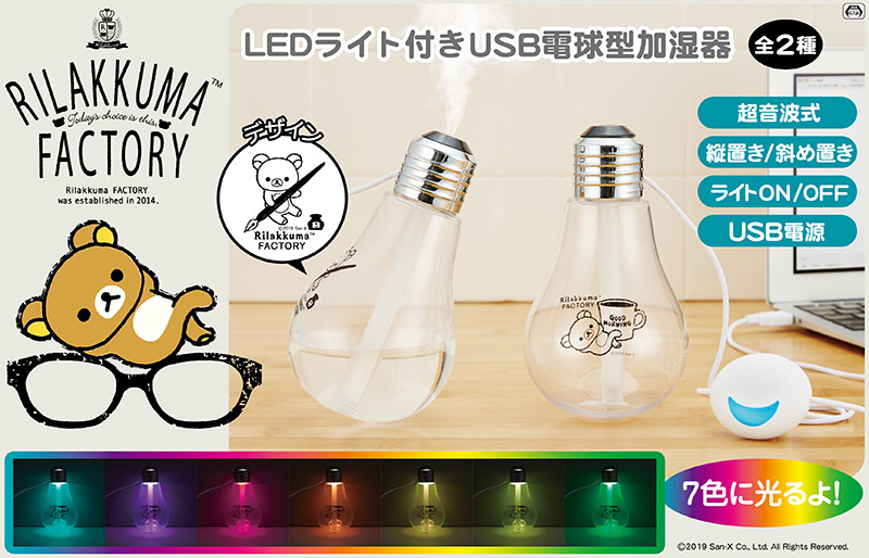 リラックマファクトリー LEDライト付きUSB電球型加湿器