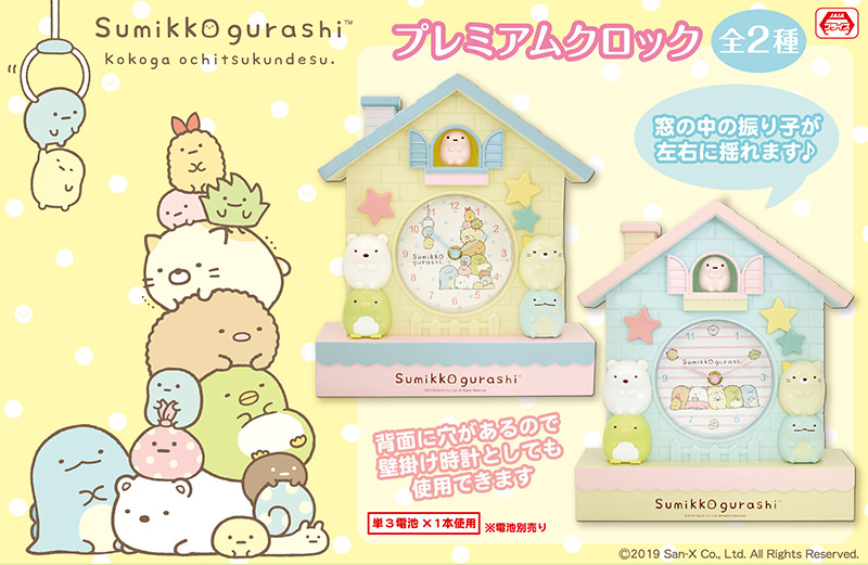 パステルカラーに揺れる振り子がお部屋の雰囲気を一気に優しくしてくれるすみっコぐらしの素敵な時計2種類です。