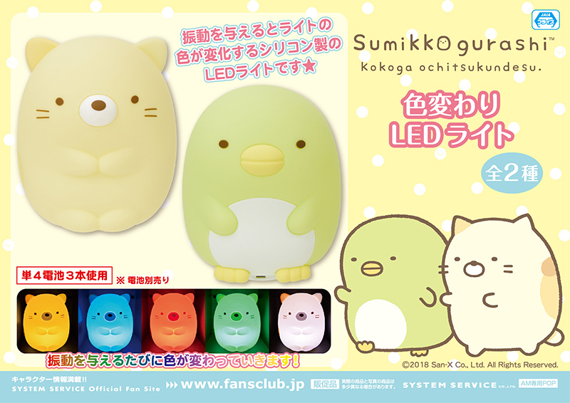 振動を与えるとライトの色が変化する遊んで楽しいシリコン製LEDライトのすみっコぐらしです☆