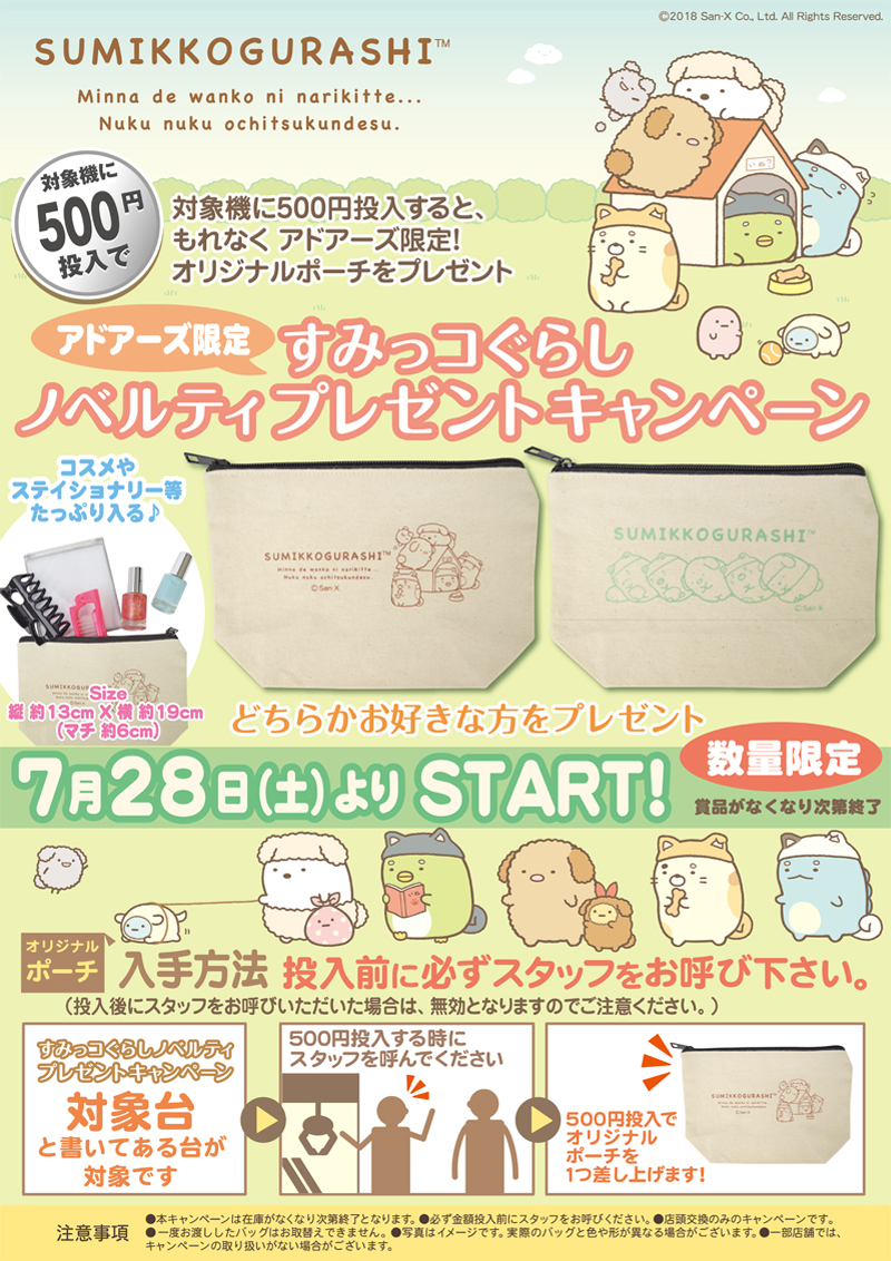 アドアーズ限定「すみっコぐらし ノベルティプレゼントキャンペーン」