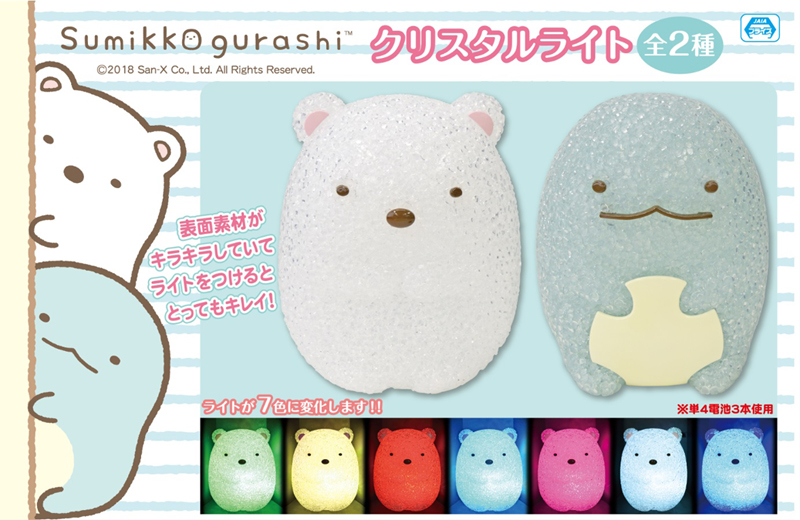 表面素材がキラキラしてメルヘンなクリスタルライトにすみっコのしろくまととかげがお目見え☆
