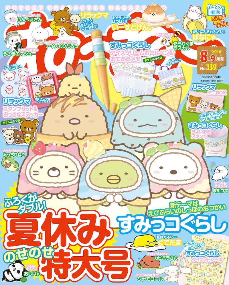 ね~ね~オリジナルの「リラックマ スタンプセットとステッカー」「すみっコぐらし アイスクリームボールペンとおてがみメモ」が付いた、夏休み特大号となっています♪