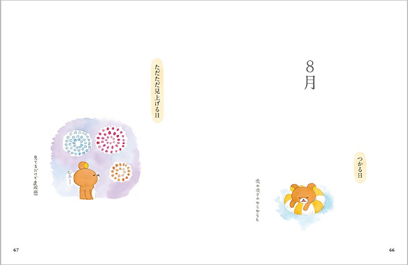 150点を超える描き下ろしイラストで、1月から12月までのリラックマたちの日常が綴られています。
