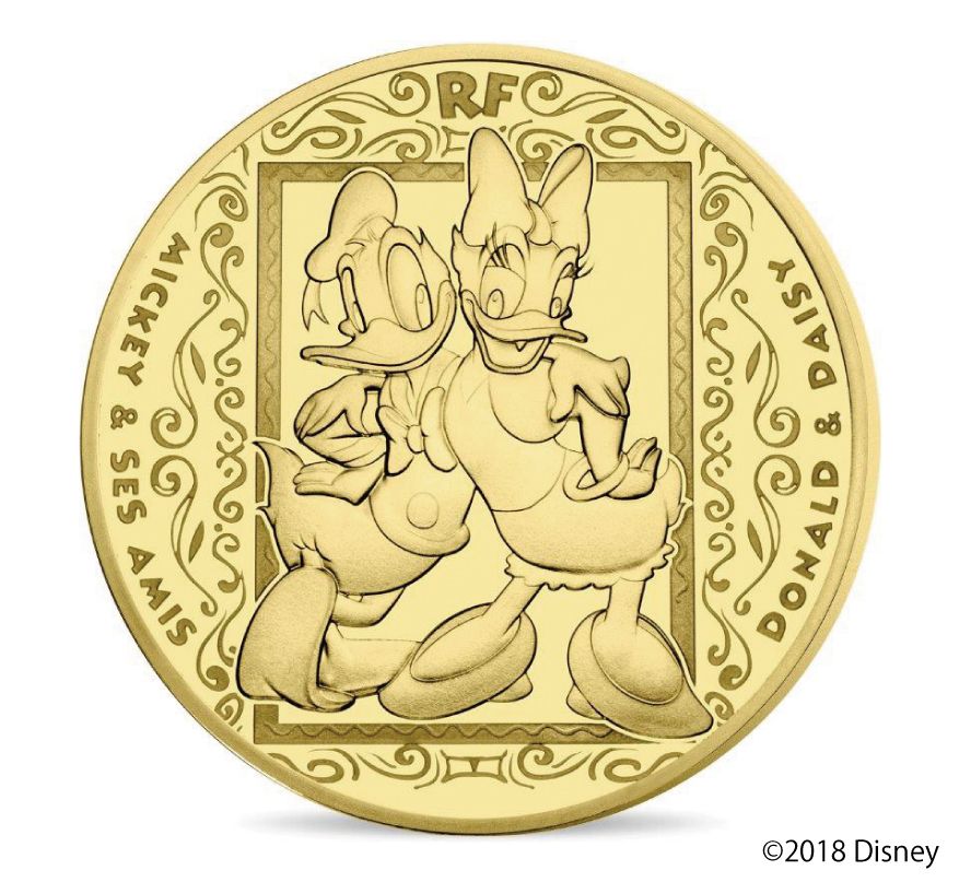 ドナルドとデイジーが肩を組んでいる50ユーロ金貨。