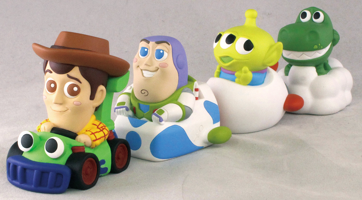 ディズニー/ピクサー映画『トイ・ストーリー』の仲間たちが楽しい乗り物に乗ったソフビ人形が登場!