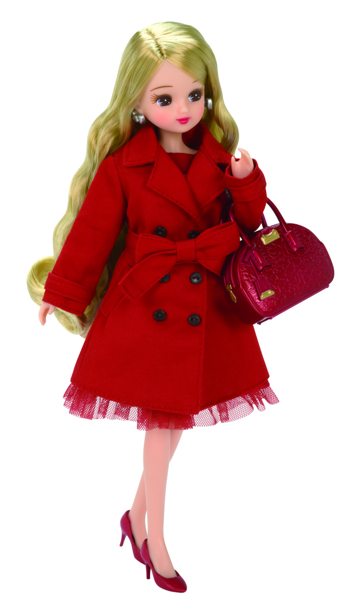 付属の真っ赤なトレンチコートや小物を組み合わせることで、様々なコーディネートを楽しめます。