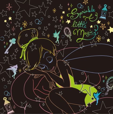 花の蕾の中でスヤスヤ眠る「ティンカー・ベル」のまわりに、星が散らばる神秘的な1枚。