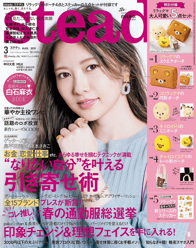リラックマの大人かわいい5点セットが付録!宝島社「steady. 2019年3月号」