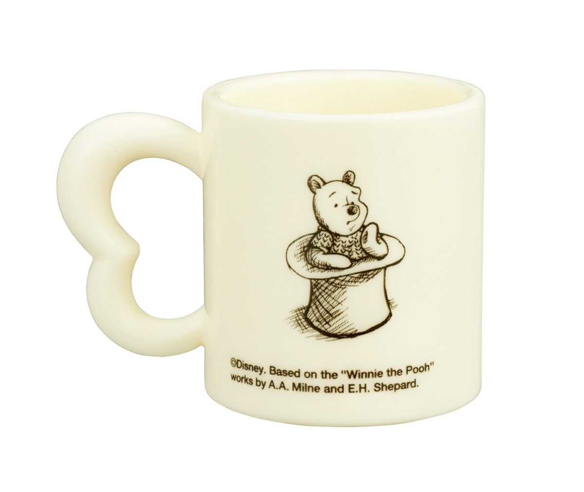 英国テイストで描かれた「くまのプーさん」のイラストが、ミニマグカップに可愛らしくデザインされています。