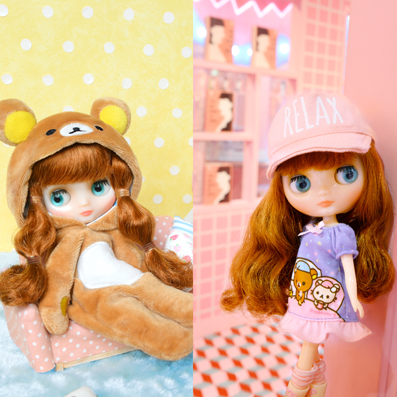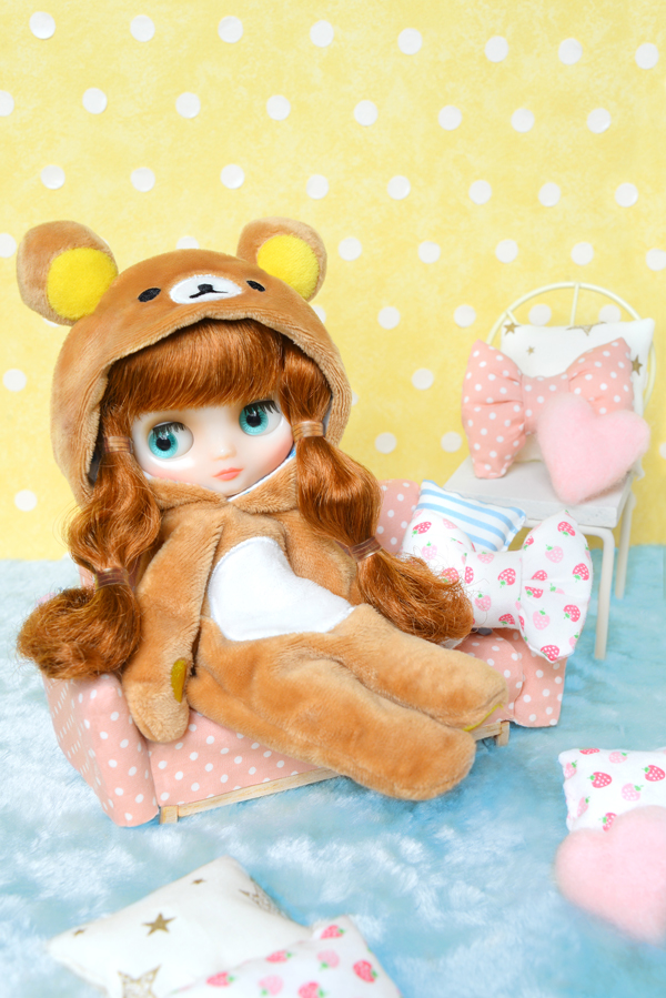 リラックマの着ぐるみパジャマで、心なしかブライスもリラックスしているように見えます。