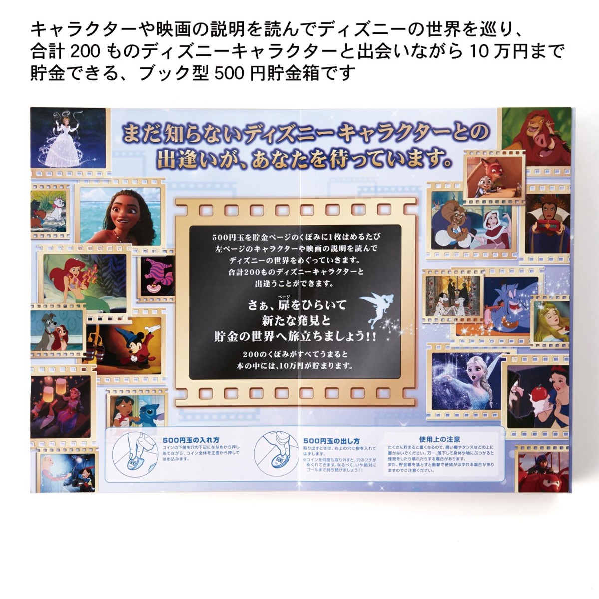 ページをめくりながら、キャラクターや映画の説明を読んでディズニーの世界観に思いをはせながらコツコツと貯金!
