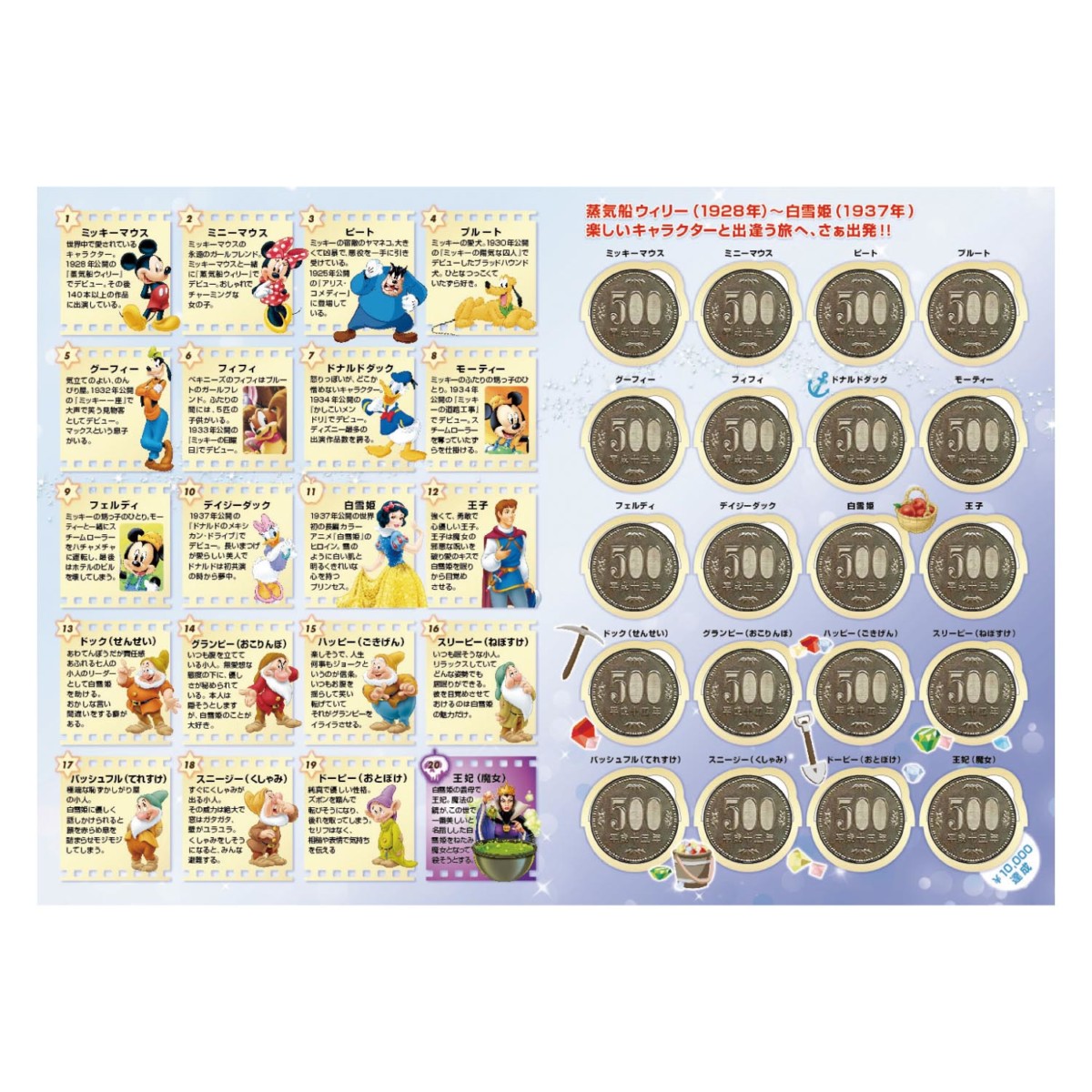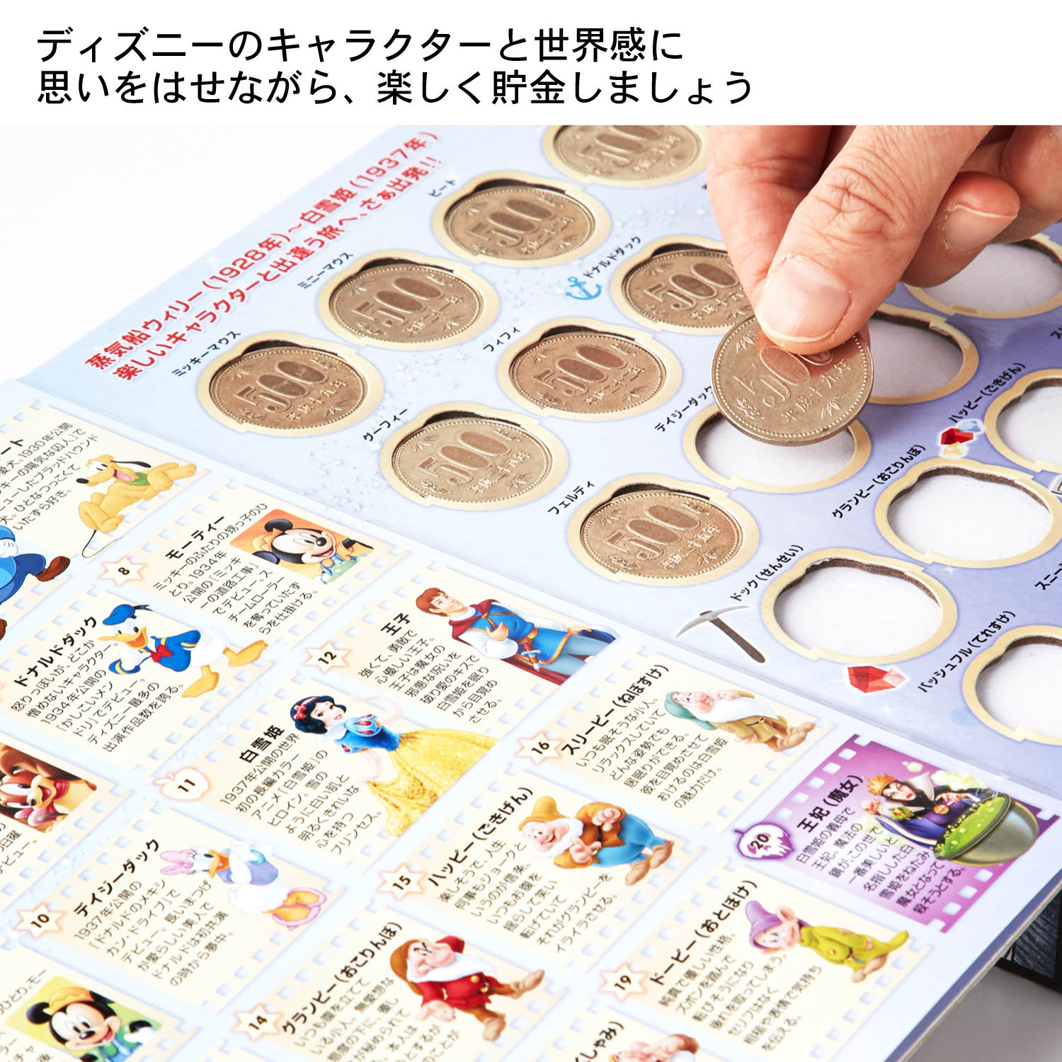 500円硬貨で楽しく10万円を貯金できる!テンヨー ディズニー「キャラクター名鑑の貯金箱」