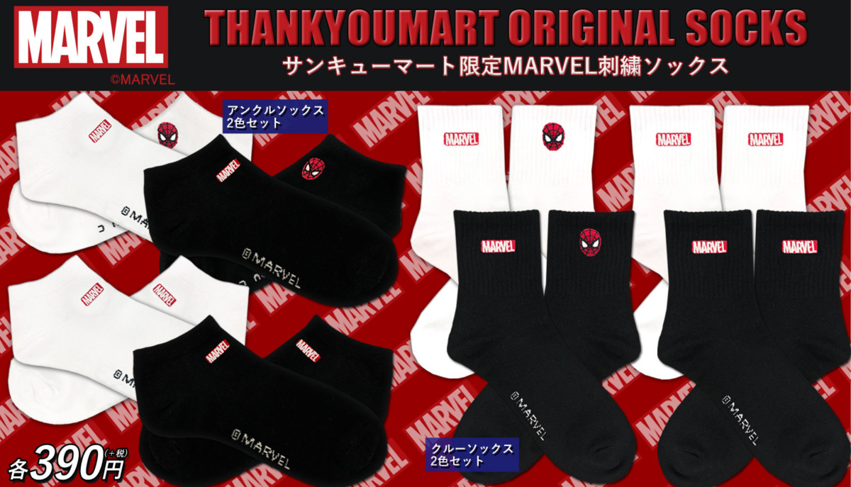 サンキューマート限定MARVEL刺繍ソックス。