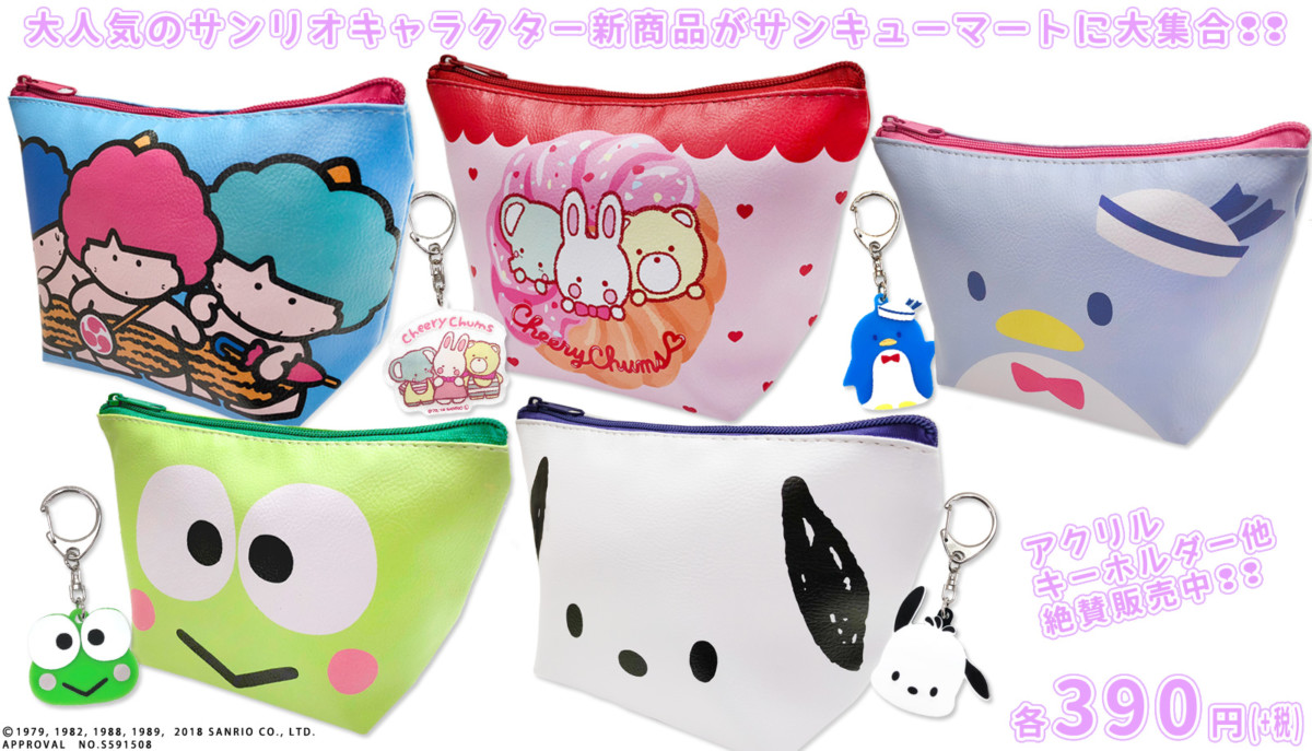 タキシードサムやけろっぴなどの懐かしデザイン!サンリオキャラクターズ×サンキューマート「コラボ台形ポーチ」