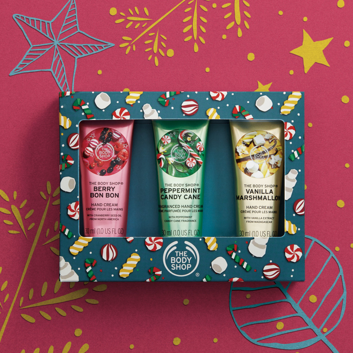 内容:ハンドクリーム 30ml×3種 (ペパーミントキャンディケーン/ベリーボンボン/バニラマシュマロ)