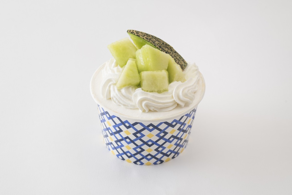 みずみずしいメロンがトッピングされており、シフォン生地のふんわりとした甘さとフルーツのすっきりとした甘さ、それぞれ違った甘さを楽しむことができます。